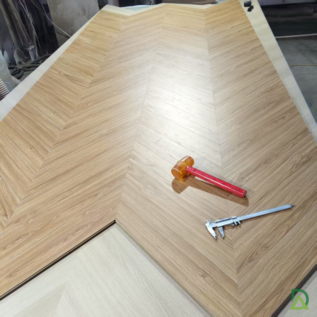 Authentic chevron shaped laminate flooring, produced by Darekaou, ordinary size.